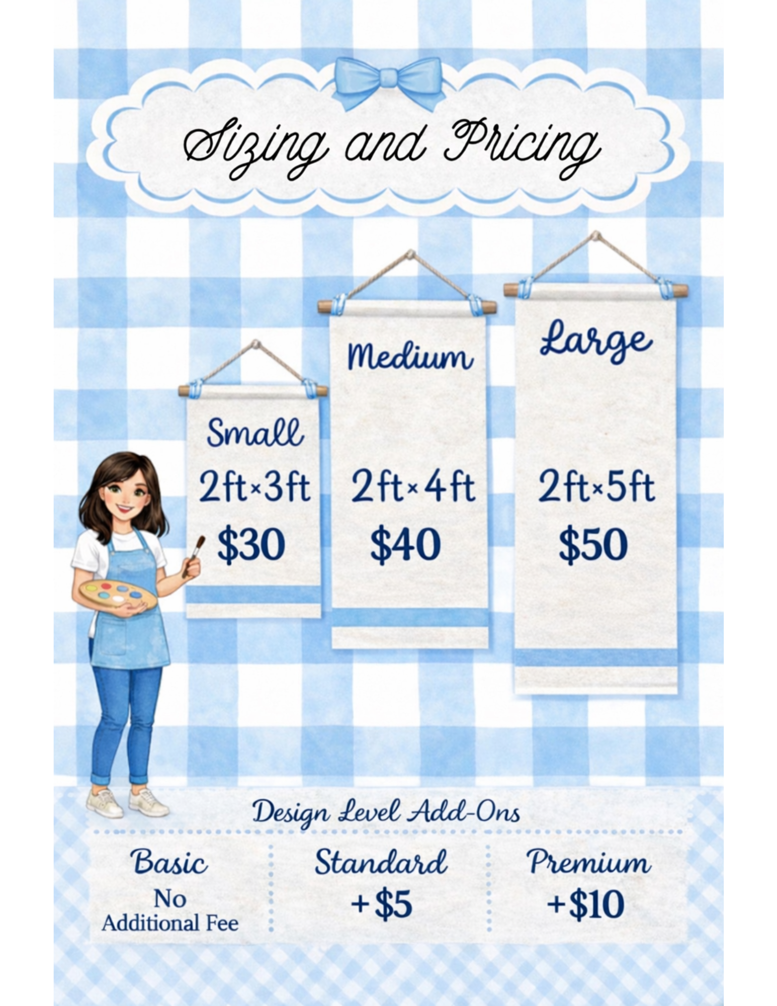 Banner pricing is based on size and level of design detail.